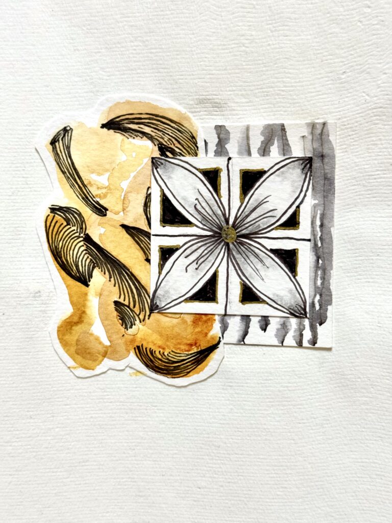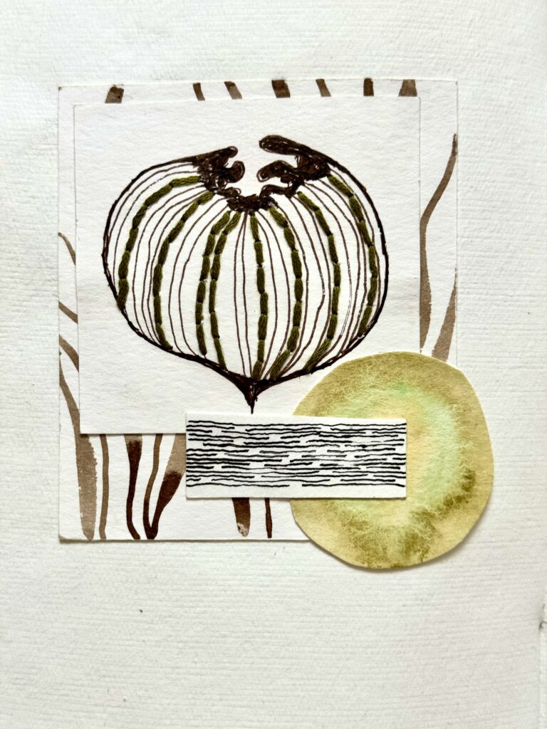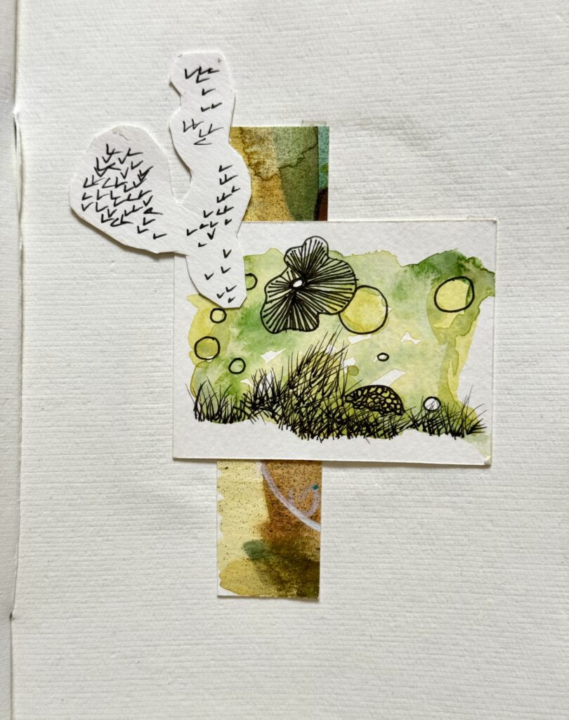Oh, and the spine of the book that I made to collect this project is not wide enough to support the added thickness from all of the collages so I will need to make a new journal with several volumes. That needs to happen sooner rather than later, but I have a busy several weeks so I’m not sure when that task will be accomplished. For now, the “alligator look” will have to do.