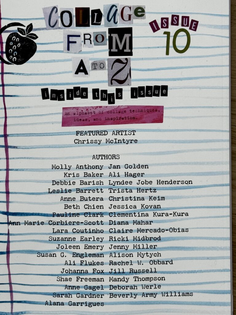 This particular issue, #10, is on “collage from A to Z.” A talented and varied group of artists each contributed entries from A to Z focusing on many aspects of collage.