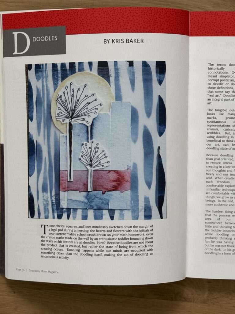One of the things I wrote about is how the process of doodling loosens up the body and mind and allows you to move from being paralyzed by the blank page to being fully engaged in flow state. I need to follow my own advice during my spring break week and find my flow. I am slowly working my way through this issue of Strawberry Moon and can feel the surge of creative energy. Hopefully that means that the creating this next week will not be quite as challenging as the past week.