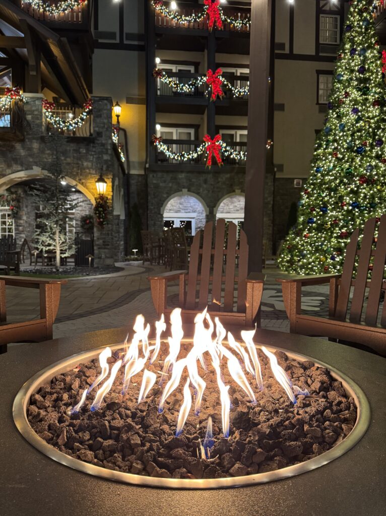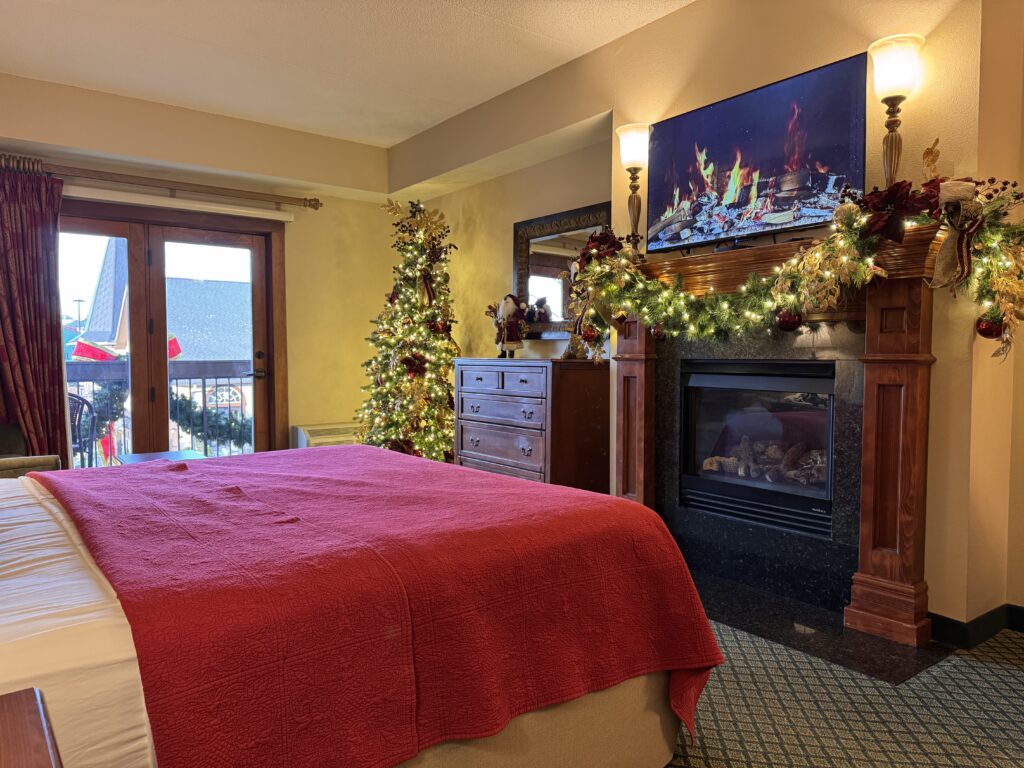 Our hotel choice was an adult choice for kid reasons. We are staying at The Inn at Christmas Place. It is decorated year round, both inside and out, for Christmas! Christmas music is playing in the lobby and a giant glockenspiel sounds Christmas Carols when it chimes. You can’t help but feel the child-like magic of Christmas surrounding you.