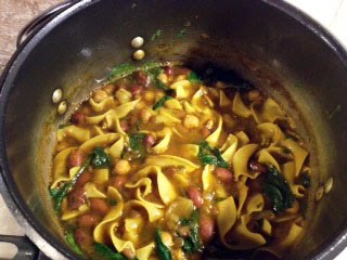 The next step in our meal preparation was to put the bread in the oven to bake and to also add some noodles to the soup. You gotta love those carbohydrates!