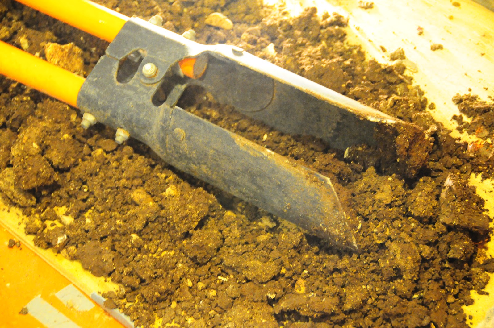 It’s a seemingly innocent posthole digger amidst some black earth . . .in the middle of the kitchen floor. I’m here to tell you this is not natural.