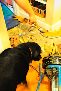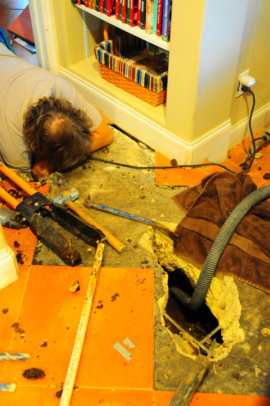 . . .create another unnatural sight – a hole in the kitchen floor. Yes, that is the foundation and beyond. See the rebar?